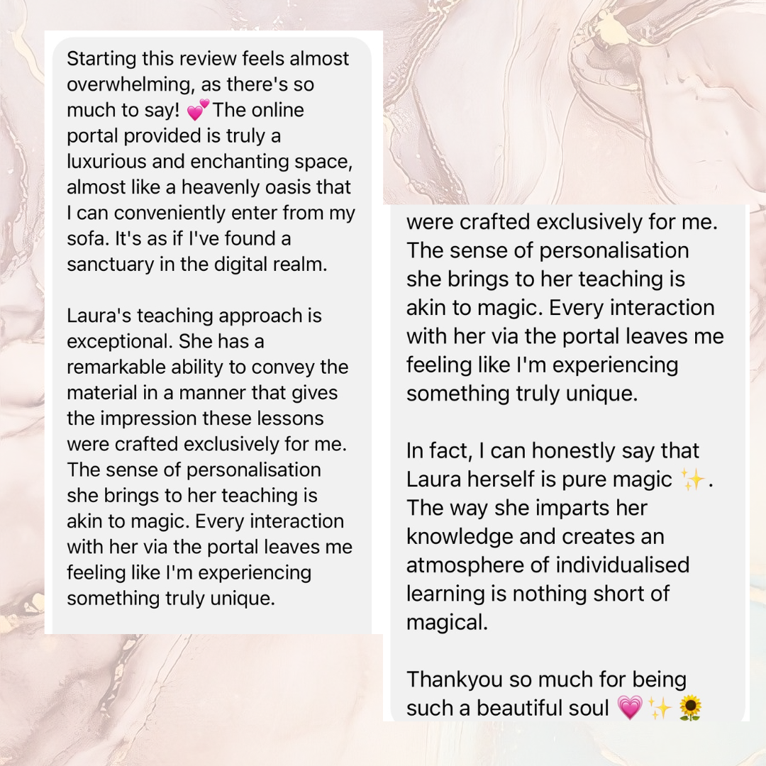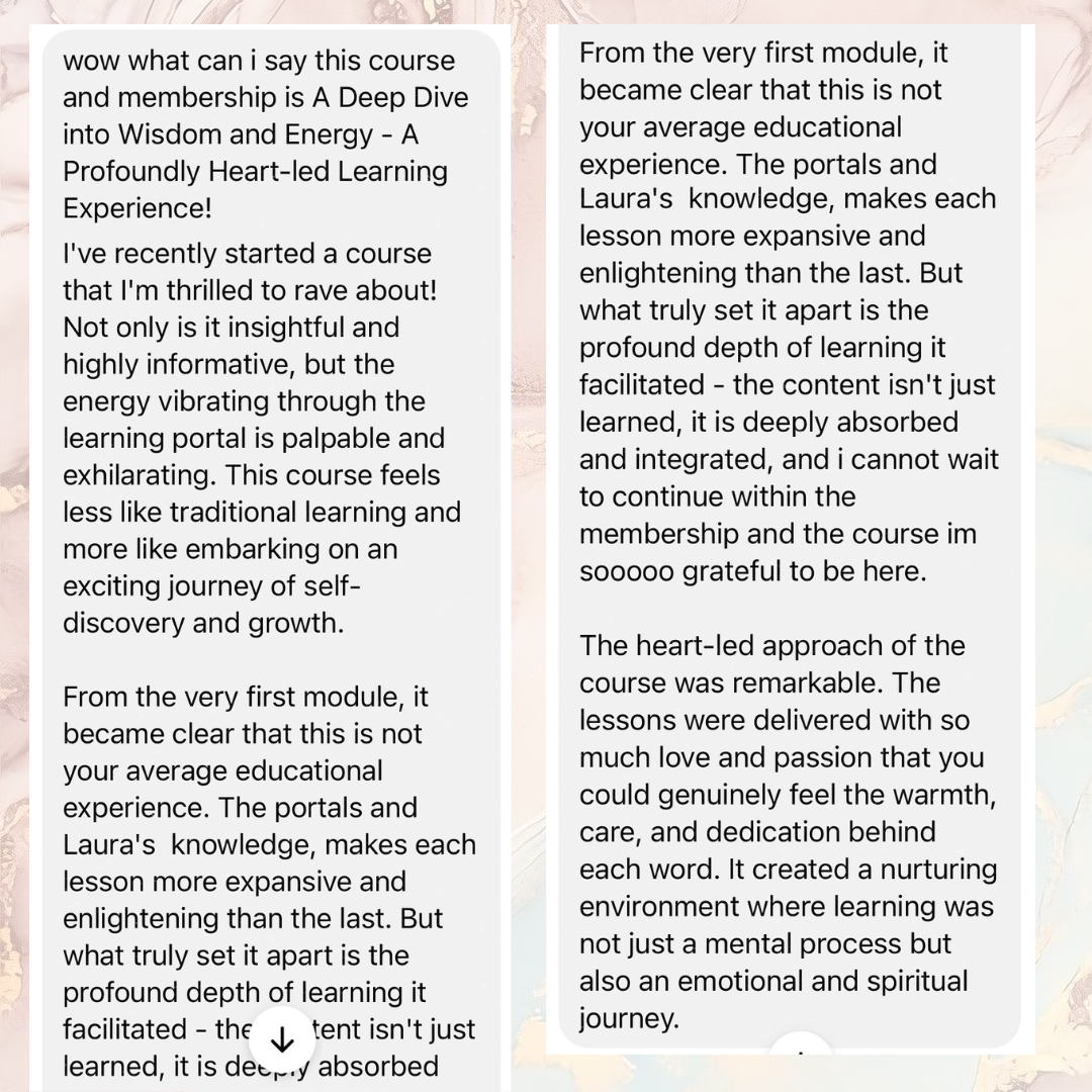 Access to an EXTENSIVE online portal, full of trainings, techniques, meditations, audios, workbooks, your very own soul journal and more. Accessible via desktop, tablet or mobile device.